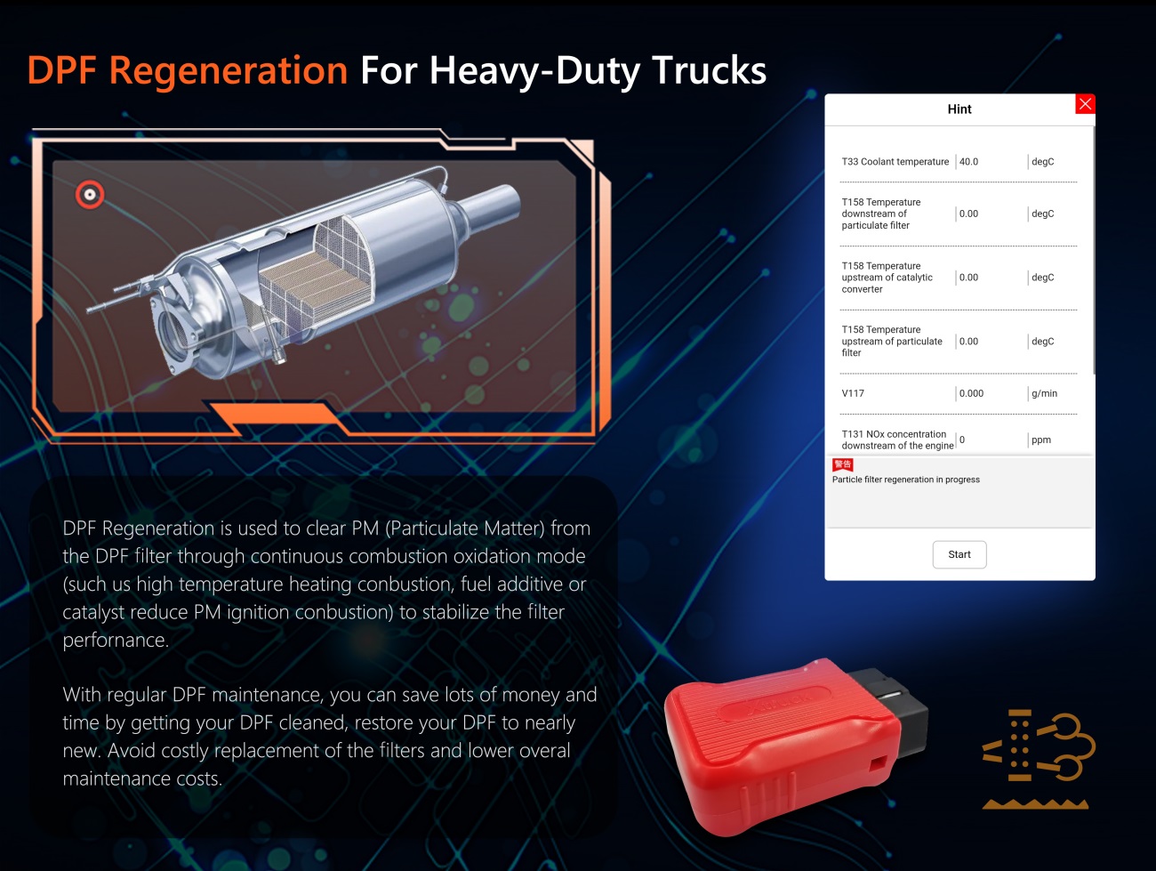 Le Xtruck X003est un outil professionnel de diagnostic de camion pour la lecture et le nettoyage des codes de défaut, test de régénération Dpf.